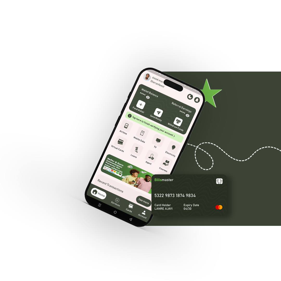 We are revolutionizing the way you handle your everyday payments and financial transactions. Designed for individuals, resellers, and agents, our platform offers an all-in-one solution to make payments easier, faster, and more rewarding. From purchasing airtime, data, and utility subscriptions to accessing international virtual dollar cards and earning referral bonuses, BillsMaster is your ultimate fintech partner. Whether you’re paying bills, tracking sales analytics, or upgrading to an agent account for bigger earnings, BillsMaster empowers you to take control of your finances like never before.